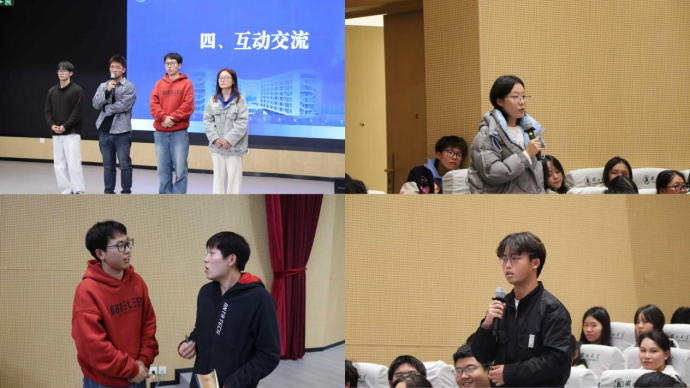 在互动交流环节,新生们踊跃提问,就“如何平衡学习与科研”“怎样准备学科竞赛”“推免流程与准备”等关心的问题与学长们进行了深入交流。现场气氛热烈,掌声不断。