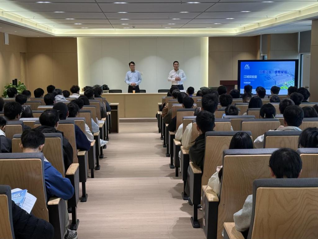 2025年10月30日上午10时,江城实验室校园招聘宣讲会在湖北大学长江新区校区产教融合大楼B栋B520报告厅成功举办。本次活动面向校区内五个新工科学院,吸引了90余名学子踊跃参与,现场累计收到来自集成电路、材料等专业的硕士及本科毕业生简历达110份,充分展现了校企协同育人的丰硕成果与学子们的热烈回应。